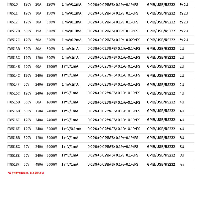 IT8500系列在具有**性价比的同时具备多种操作模式和测试功能,满足客户多元化的测试需求:可编程List输出模式,定电压、定功率、定电流、定电阻模式,远端测量、短路测试、电池测试、动态测试功能。该系列具备良好的低电压带载特性,提供高效率、高精度的测试解决方案,可选配USB/RS232/GPIB通讯接口。