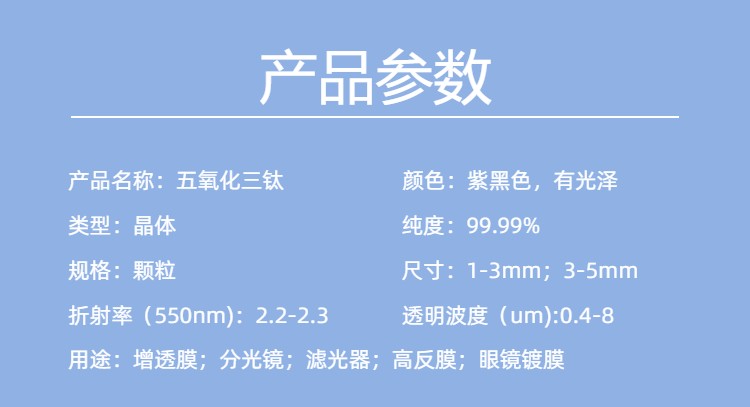 五氧化三钛规格:1-3mm 3-5mm纯度:4N包装:真空包装